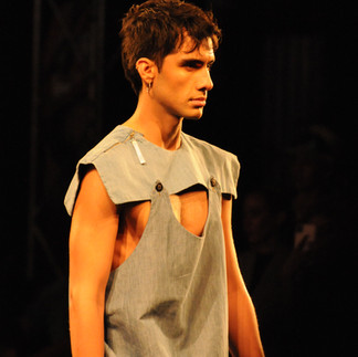 El show de Camilo fue uno de los mas esperados y concurridos de la feria, como es costumbre el diseñador Alvarez mezclo la puesta en escena con sus diseños de una manera disruptiva y especial, haciéndonos entrar en un mundo distinto lleno de altos y bajos, la pasarela comenzó con los modelos caminando a una velocidad muy lenta que fue aumentando a medida que los beats de la música aumentaban. Camisetas oversized, conjuntos a juego y volúmenes en boleros hechos en denim nos muestran un hombre postmoderno y urbano, los guantes nos hicieron recordar a esa humanidad que cada vez es mas antiséptica y cuidadosa. La pasarela de Camilo termino con una animación increíble que nos concretizaba sobre la importancia de realizarse el autoexamen para la prevención temprana del cancer de seno.